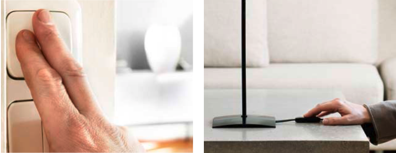 TOIMINTA Smartecno järjestelmä on yksinkertainen Kaikki toimii kuten ennenkin. Käyttäjälle ei tarvitse antaa erillistä koulutusta tai opastusta. Ja jos halutaan enemmän, voidaan esimer- kiksi antaa eri käsky kaksoisnapsauttamalla painiketta. Se on älykäs ja toimii mistä tahansa, olipa painike sitten seinässä tai pöytävalaisimessa. Pärjäät ilman manuaalia. Helppokäyttöisyys mahdollistaa intuitiivisen ja mukavan lähestymis- tavan uuden teknologian käyttöön. Se soveltuu koko perheelle - pikkulapsesta isovanhempiin. | Sinun valaistuksesi - tule jo