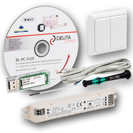 Kaikki "FLEX" valaistusohjausjärjestelmät tarjoavat saman laajan toiminnallisuuden. Konfiguroitavissa langattomasti PC-työkalulla BL-PC-FLEX ja EnOcean USB-tikulla. Voit konfiguroida esim. ryhmät, tilanteet ja osoitteet mukavasti kohteessa.
