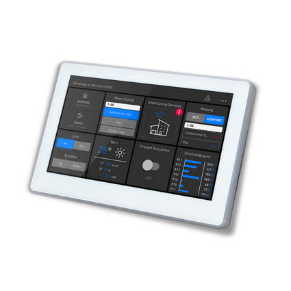| Sven - Kotisi digitaalinen avustajadigitalSTROM visualisointi SVEN yhdistää älykkään kodin ominaisuudet intuitiivisella näytöllä. Tämä sisältää paitsi lämpötilan ja valaistuksen ohjauksen, myös muita online- ja sääpalveluita. Kun ovikello soi, SVEN:stä tulee automaattisesti viestintäjärjestelmä ja siten lisäksi digitaalinen avustajasi asuntoosi. Kustannustehokas SVEN järjestelmä tarjoaa myös uusia mahdollisuuksia vuokraisännille. Henkilökohtaisen viestinnän ansiosta, voit kommunikoida helpommin vuokralaisen kanssa mahdollistaen huoneistojesi modernit ominaisuudet tulevaisuudessa. digitalSTROM perustoiminnotSVEN yhdistää digitalSTROM toiminnot yhdelle kosketusnäytölle. Tämä tarkoittaa paitsi lämpötilan, valaistuksen ja varjostuksen ohjausta, myös näkymää omaan sähkönkulutukseesi. Kaikki sähkölaitteet voidaan poistuttaessa sammuttaa koskettamalla "poissa" -painiketta ja samanaikaisesti käynnistää läsnäolo- simuloinnin sekä muita haluttuja toimintatiloja. SVEN:in asennus kestää enintään 10 minuuttia. 7'' kosketus- paneeli, joka on saatavilla seinään upotettavan tai vapaasti seisovana mallina, lukee automaattisesti tarvittavat tiedot digitalSTROM palvelimelta. Esiasennetun ohjelmiston avulla voit mennä suoraan valikkoon. Yksittäinen PoE (Power over Ethernet) kaapeli muodostaa teholähteen sekä verkkoyhteyden. |